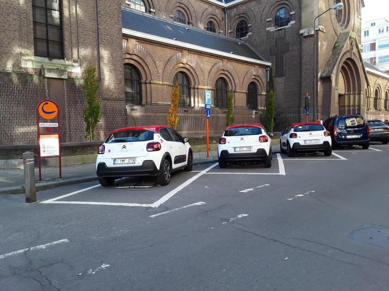 La station « Brugmann » » se trouve Place Georges Brugmann, en face du numéro 11, devant l'église. Elle compte maintenant 4 véhicules.